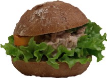 Ciabatta Weissbrot, hausgemachter Thunfischsalat mit Zwiebel, Gurkerl, Majonaise und Garnierung)