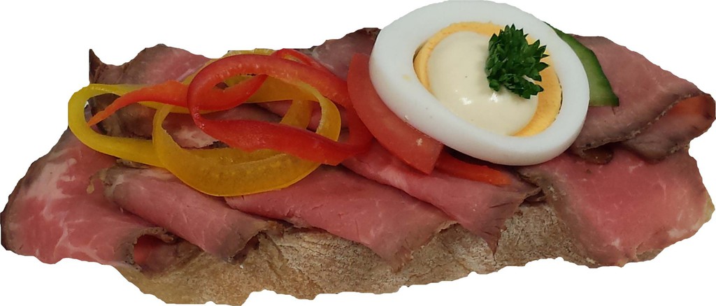 Ciabatta Weissbrot, Rost Beef, Paprika, Ei und Garnierung