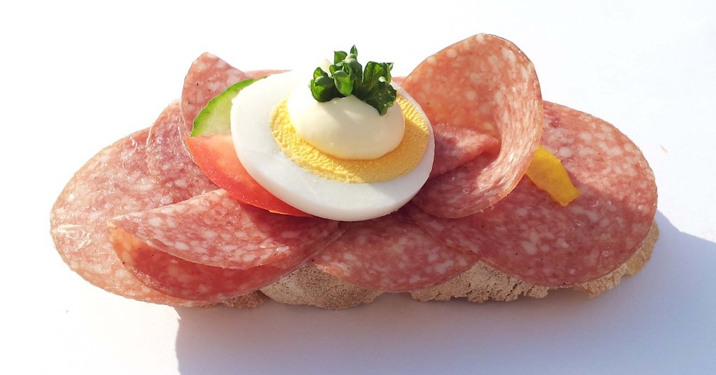 Ciabatta Weissbrot, Salami, Ei und Garnierung