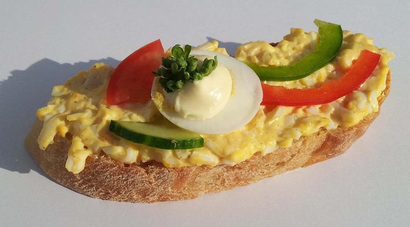 Ciabatta Weissbrot, hausgemachter Eiaufstrich mit Majonaise, Garnierung