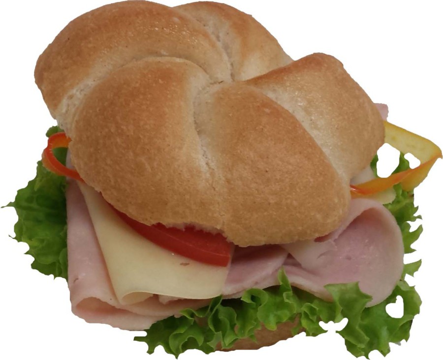 Ciabatta Weissbrot, Schinken, Gemüse-Majo-Salat, Ei und Garnierung